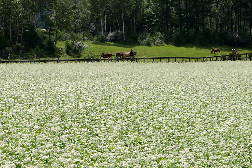 今年も満開だ・・ 蕎麦畑と木曽馬・・ 長野県木曽郡木曽町開田高原 2016 9月上旬撮影