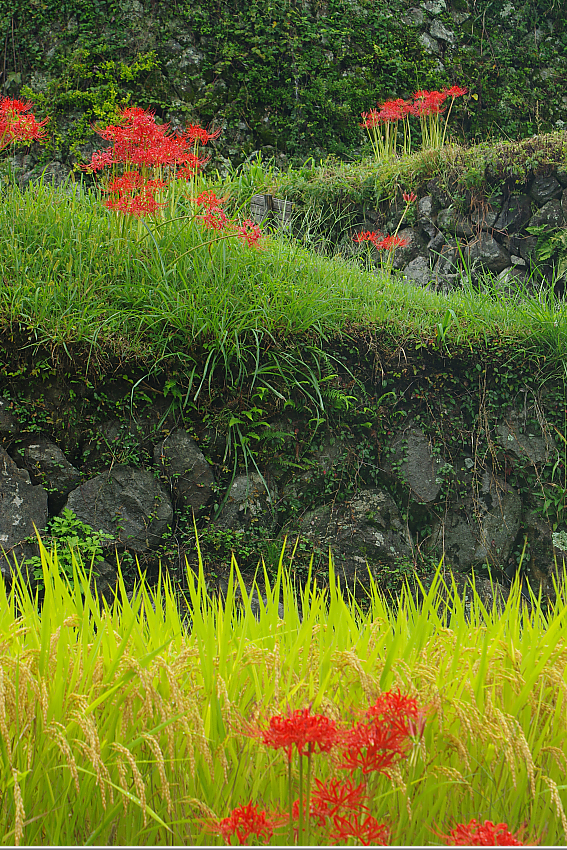 棚田の英智・・ 坂折の石と水を上手く利用して築き上げてきた棚田 様々な石積でつくられている・・ 坂折棚田 岐阜県恵那市中野方町 2016 9月下旬撮影
