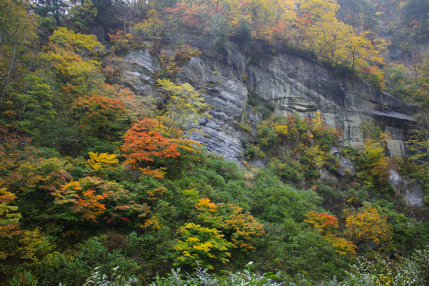 「岩壁の秋」 奥裾花渓谷 長野県長野市鬼無里日影 2016 11月上旬撮影