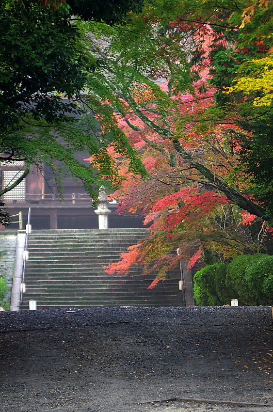 「静秋」まだ開門前の静かな境内に紅い木々が出迎えてくれた・・ 三井寺 滋賀県大津市園城寺町 2016 11月下旬撮影