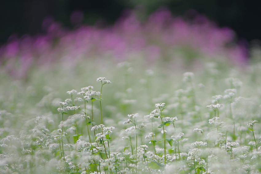 「赤と白」 蕎麦畑 コスモスを背景に・・ 長野県木曽郡木曽町開田高原 2016 9月上旬撮影