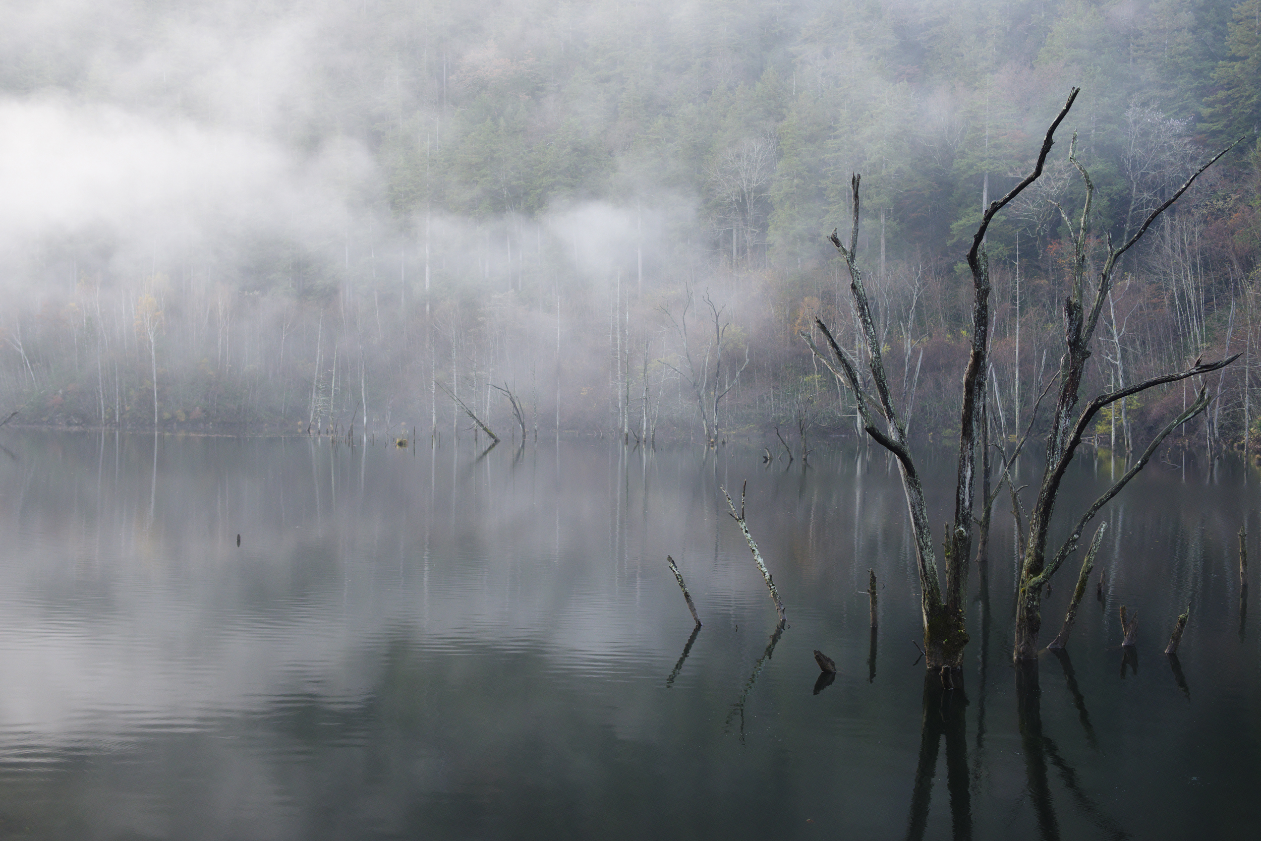 神秘の湖 長野県王滝村 PENTAX K-1 MarkU FA50mm F1.4 1/200 F2.5 ISO 1600 WB AUTO 仕上 ナチュラル 2020 11/8 6:46 撮影