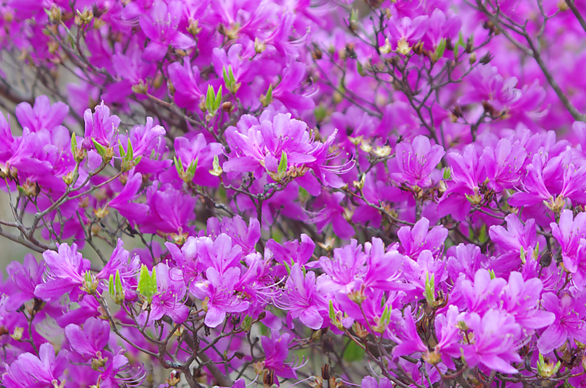 ”赤紫色に癒されて”満開のミツバツツジ 愛知県豊田市設楽町 2016 5月上旬撮影
