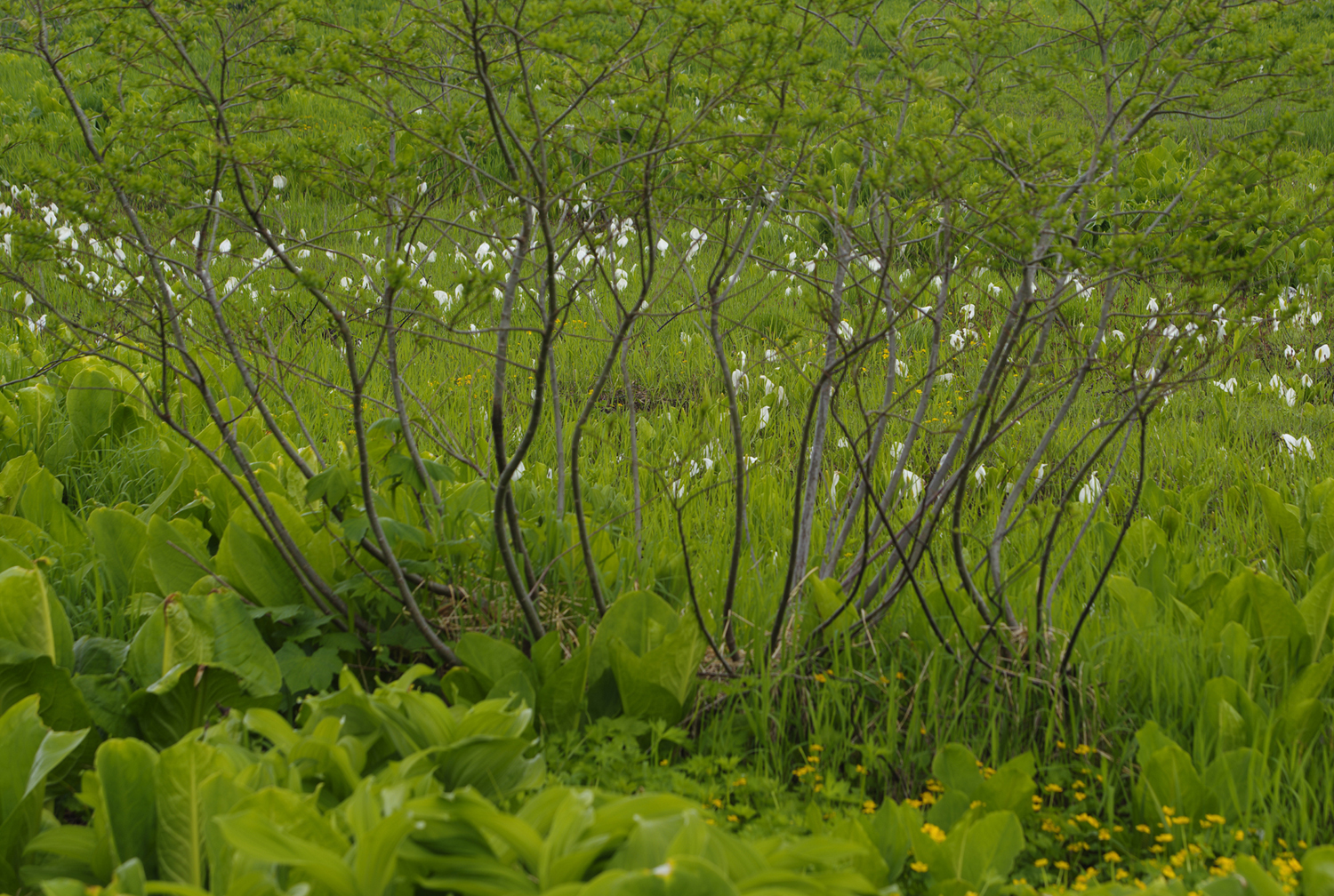 "水芭蕉がお出迎え” 栂池自然園 長野県小谷村 PENTAX K-1 MarkU FA 80-200mm F2.8 1/25 F11 WEB AUTO ISO 100 補正 -0.7 仕上 風景 2021 6/26 9:58 撮影