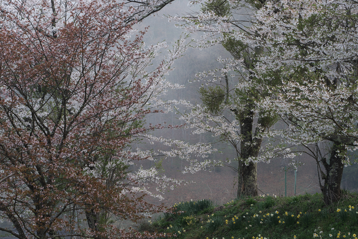 "桜咲く頃” 野平 長野県白馬村 PEMTAX K-1MarkU FA 80 - 200mm F2.8 0.5sec F 16 WB マルチパターンオート ISO 400 補正 0 仕上 ナチュラル 2023 4/21 5:13 撮影