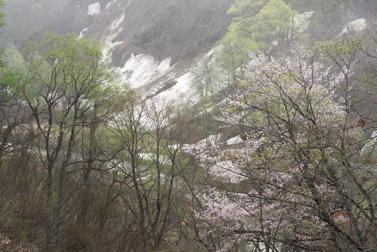 "白と緑の狭閧ナ” 長野県小谷村 PEMTAX K-1MarkU FA 80 - 200mm F2.8 1/13 F 16 WB マルチパターンオート ISO 100 補正 0 仕上 ナチュラル 2023 4/21 8:42 撮影