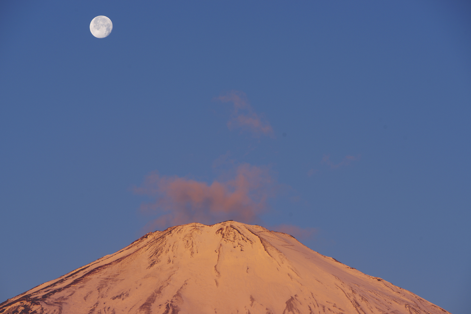 ”月と赤富士" PEMTAX K-1MarkU D FA24-70mm F2.8ED SDM WR 1/60 F11 WB AUTO ISO 100 補正 0 仕上 風景 撮影地 山中湖 山梨県 2022 1/20 6:57 撮影