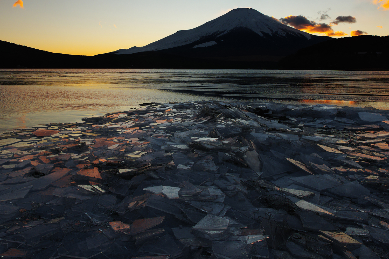 ”砕氷紅に染まる" PEMTAX K-1MarkU FA24-70mm F2.8ED SDR WR 1/15 F11 WB AUTO ISO 100 補正 0 仕上 風景 撮影地 山中湖 山梨県 2022 1/20 16:53 撮影