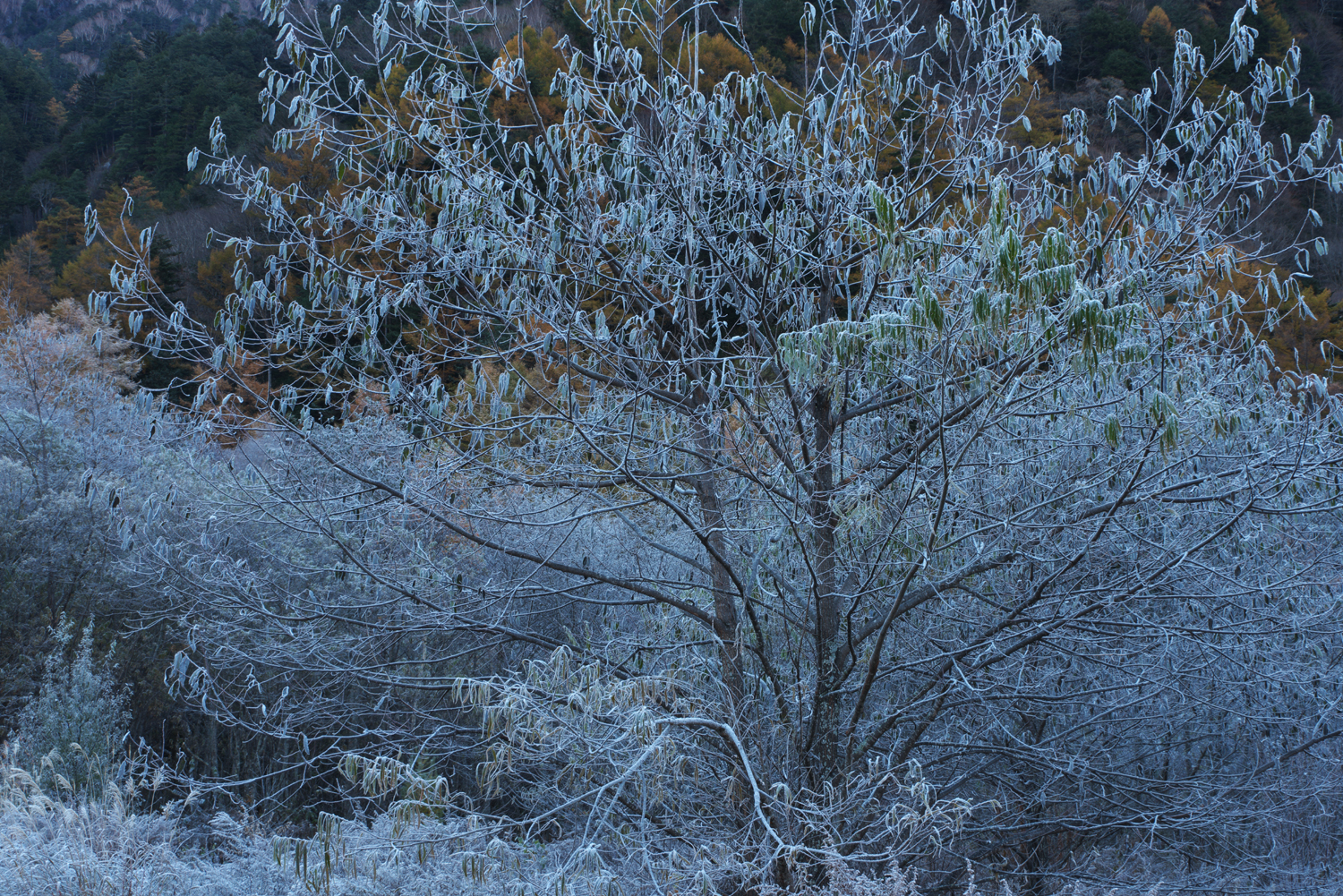 ”冬化粧" PEMTAX K-1MarkU FA24-70mm F2.8ED SDR WR 1/5 F20 WB AUTO ISO 100 補正 0 仕上 風景 撮影地 上高地 大正池 長野県 2022 10/27 8:07 撮影